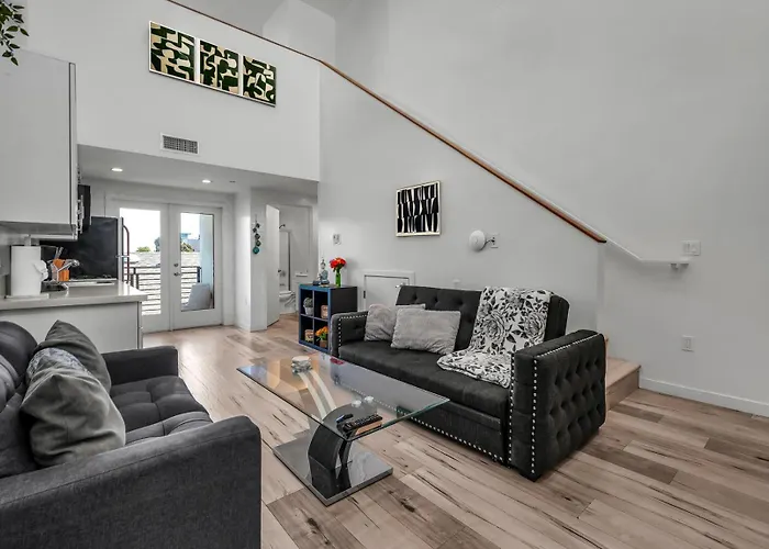 Stylish Modern One Bedroom Loft With Full Bathroom & Washer Dryer ligt op circa 6 km van Honkbalstadion Dodger Stadium en heeft gratis privéparkeerplaatsen voor degenen die met de auto reizen. Het appartement van 66 m² ligt op ongeveer 6 km van het amfitheater Hollywood Bowl en op geringe afstand van het Vermont/Beverly metrostation.